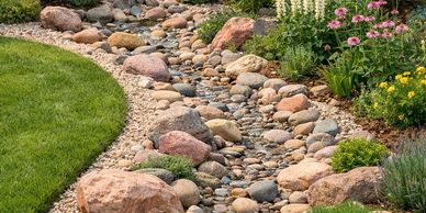 Add stone to areas to keep water flowing and draining. Helps prevents washout in mulch beds and other areas.